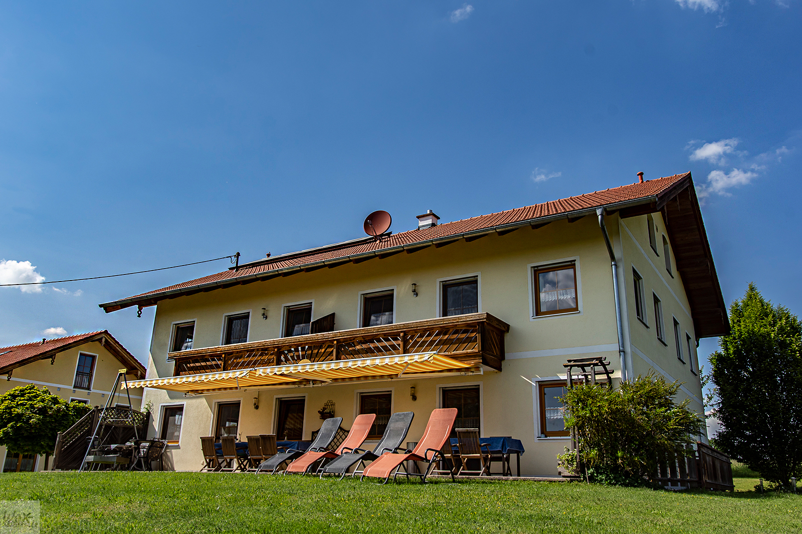 Zwischen den Hügeln des Voralpenlandes, liegt der idyllische Hof von Familie Wieser mit seinen beiden Gästehäusern..